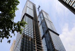 该项目为大连第三大地标性建筑。其建筑面积约17万㎡,由两座呈南北向平行排列的56层矩形塔楼组成。地下6层,挖深-28m,属深基坑、大体积混凝土项目。项目地处沿海地区,整个地下室全部处在压力水环境中,采用传统防水技术将面临施工繁琐、后期渗漏源很难查找等诸多问题。项目选用北京龙阳伟业FS系列防水产品,较传统防水技术具有施工过程应用便利、高效快捷等优势,能够有效控制混凝土早期裂缝发展,更适用于沿海地区防水工程建设。最终该项目以良好的地下防水效果,获得了客户的高度评价和满意反馈。